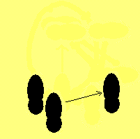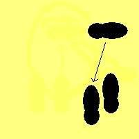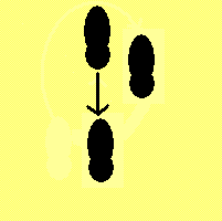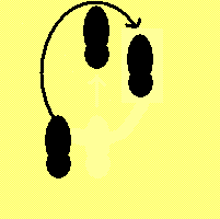 ④右足を左足の後ろに持ってゆき、つま先だけを床につける。図が手抜きでスンマセン。